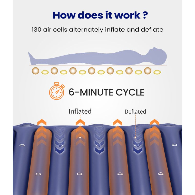 By changing the pressure points on the body, it relieves prolonged pressure on the skin, promotes blood circulation, and prevents pressure ulcers and bedsores.